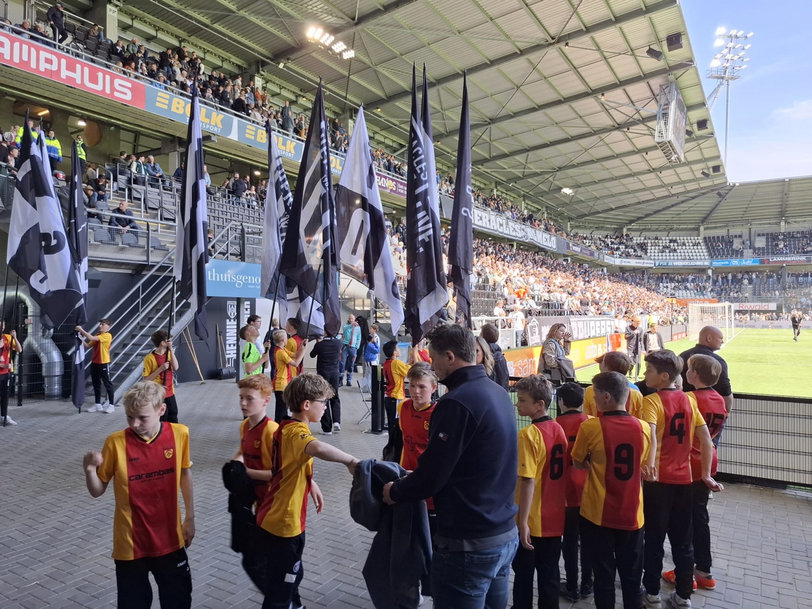 Maar liefst 24 enthousiaste STEVO-spelers van STEVO JO13 en JO17 mochten het veld van het Asito Stadion betreden. Terwijl de tribunes uitpuilden en de sfeer er goed in zat, zorgden onze talenten voor een spectaculaire opkomst door met de vlaggen te zwaaien en het indrukwekkende middencirkeldoek te dragen. Een moment om nooit te vergeten; voor even voelden zij zich de echte sterren van de Eredivisie!