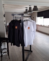 Zaterdagmiddag was het een gezellige en sportieve drukte in de kantine van STEVO, waar de kaderleden van de jeugdafdeling hun nieuwe clubkleding kwamen passen. Met zichtbaar enthousiasme werden de verschillende items uitgeprobeerd en bewonderd.