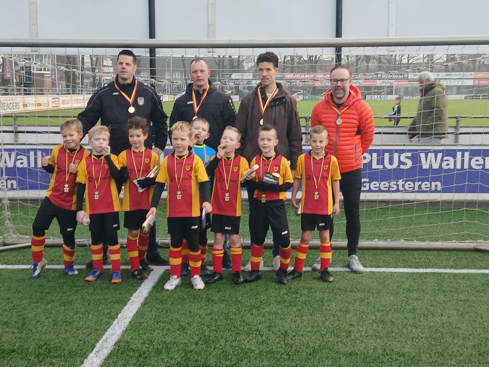 Ook het jeugdbestuur – met voorzitter Kasper Olimulder, Mirjam Harmelink en Johan Brughuis – was aanwezig om de felicitaties over te brengen. Na afloop werden de welverdiende medailles omgehangen en werd het kampioenschap in de kantine uitbundig gevierd.