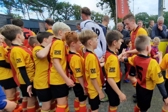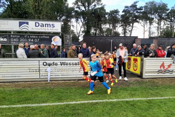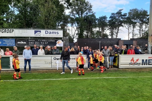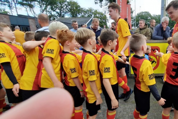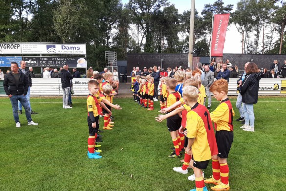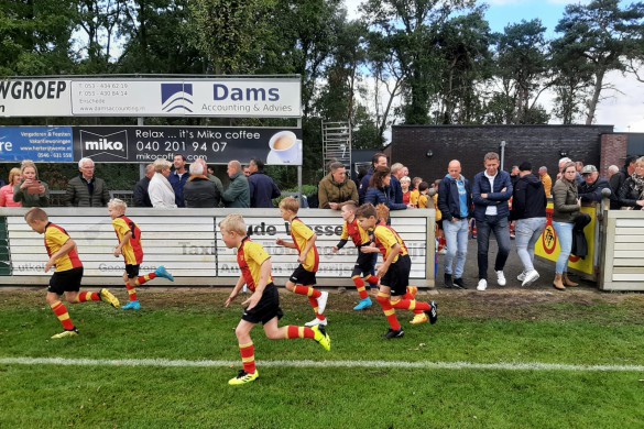 De pupillenparade die STEVO voorafgaand aan het duel tegen SV Schalkhaar hield was een mooi schouwspel van rood en geel op het hoofdveld van de Peuverweide. De ouders waren massaal aanwezig om hun kroost te zien dartelen op de groene mat.